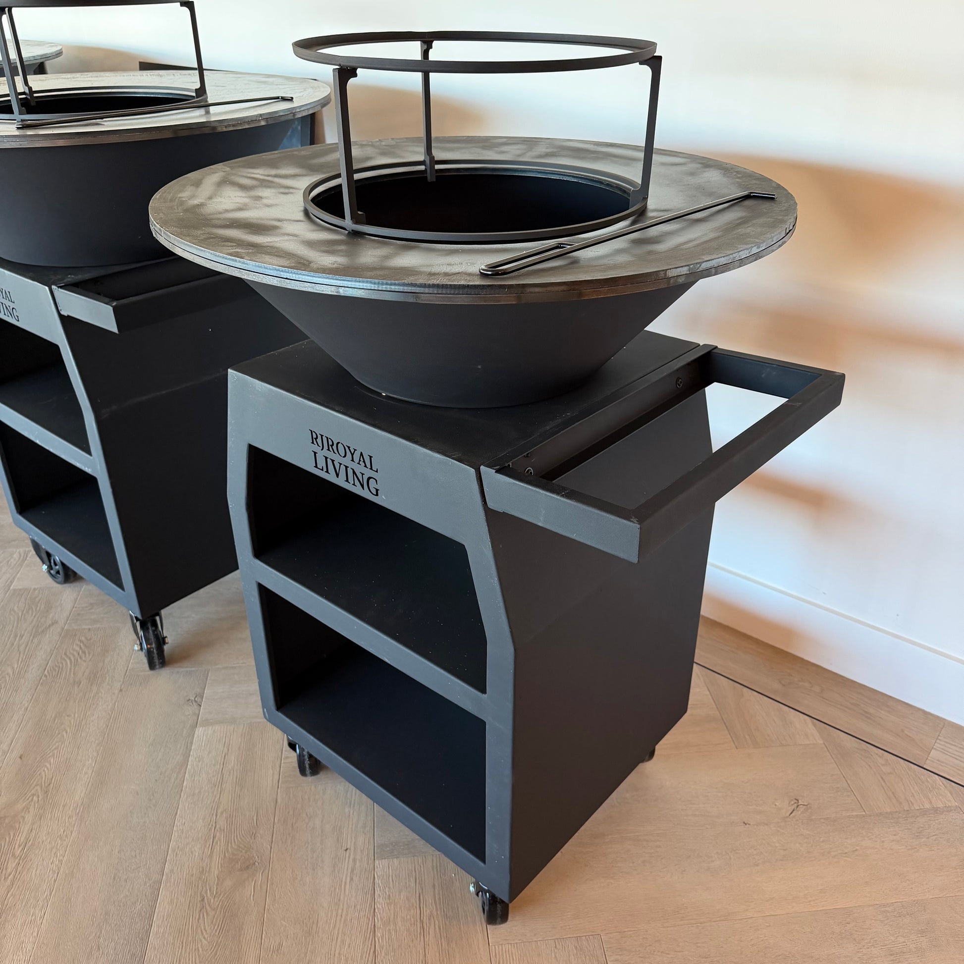 BBQ Plancha Grill Maestro Ø70cm Blackline - Mit großen Rädern und Holzlagerung